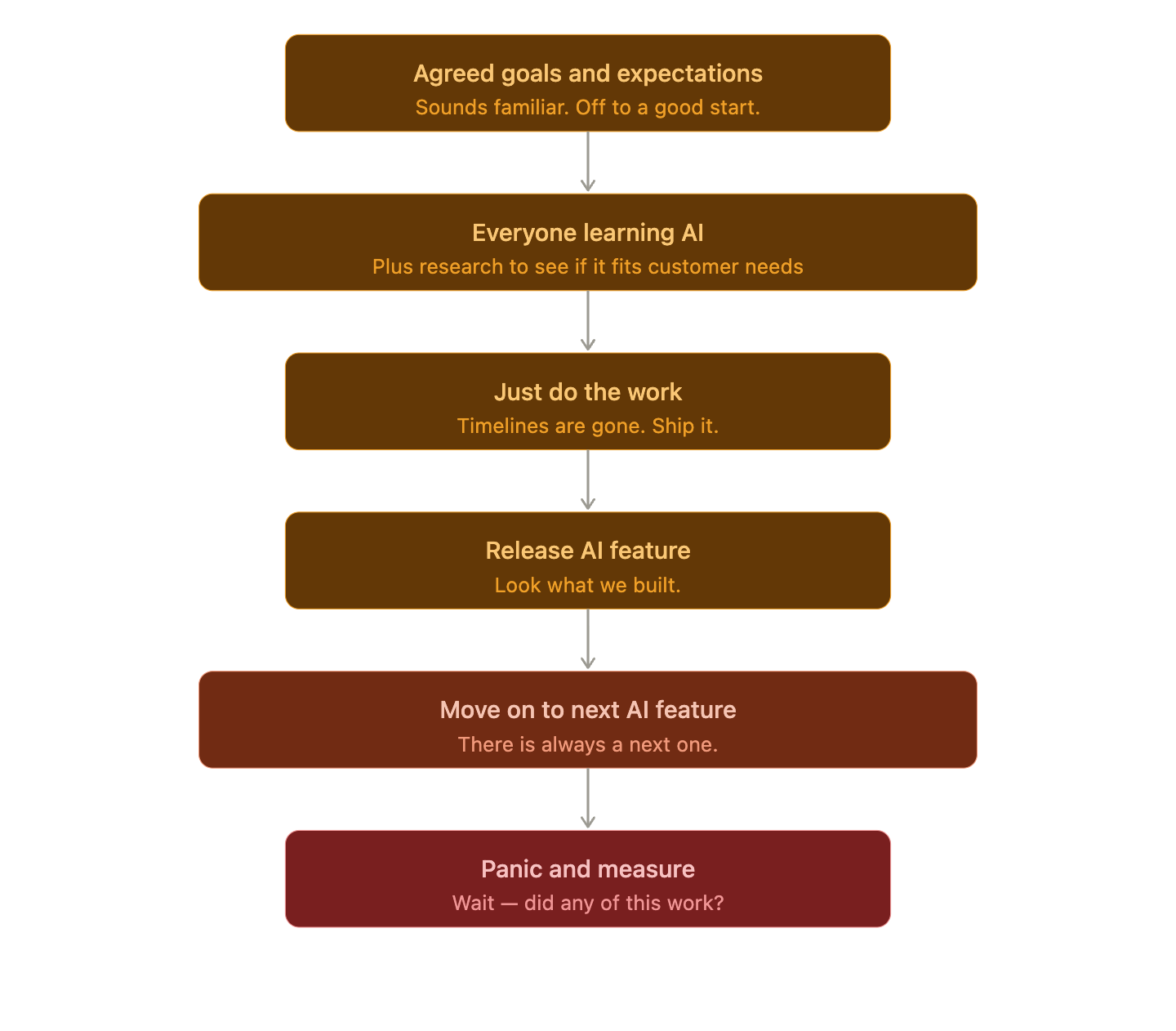 The irony of this moment is that the teams who will build the most durable products are probably not the ones moving fastest. They’re the ones who are clearest about what they’re actually trying to accomplish and why, and setting up mechanisms to measure success before moving on. They’re the ones who have built the discipline to keep that clarity even when the hype cycle is deafening.